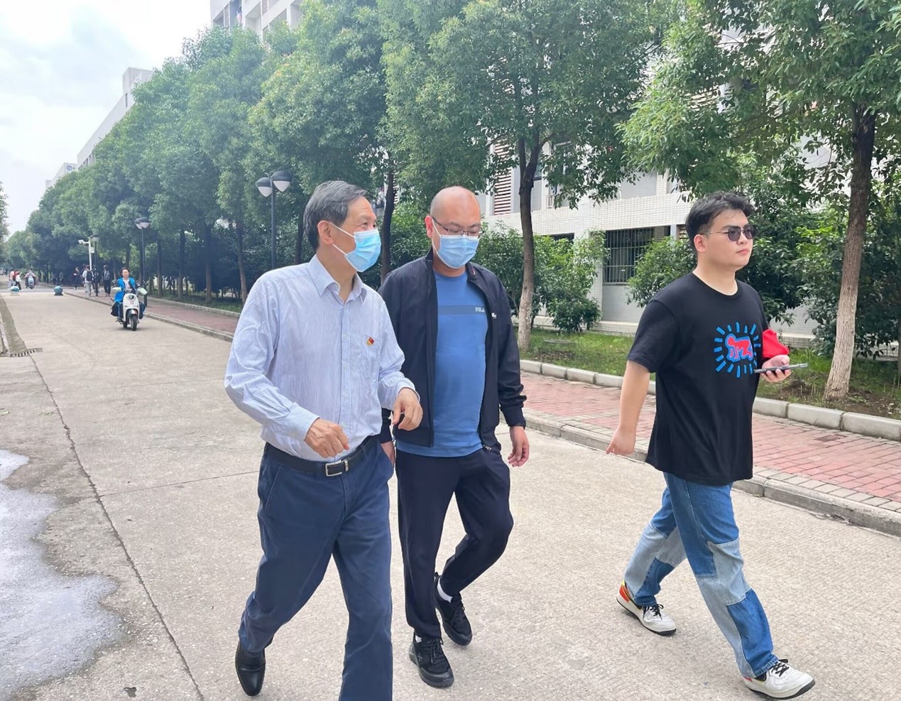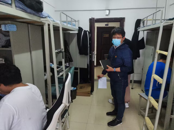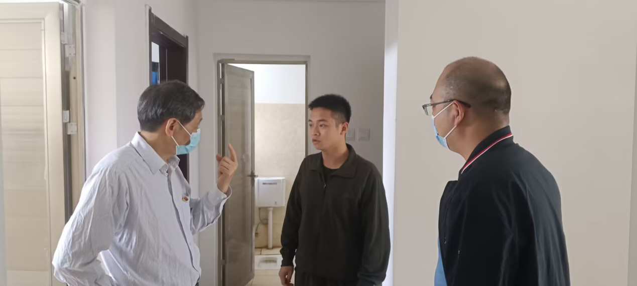 威廉希尔副董事长胡立君和威廉希尔williamhill党总支书记朱启贵走访了16栋退役军人员工寝室。