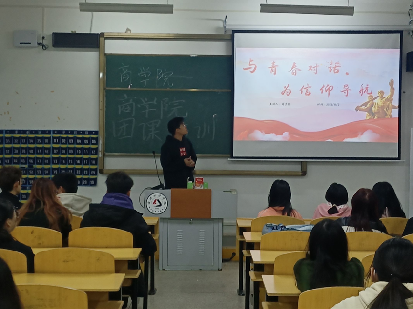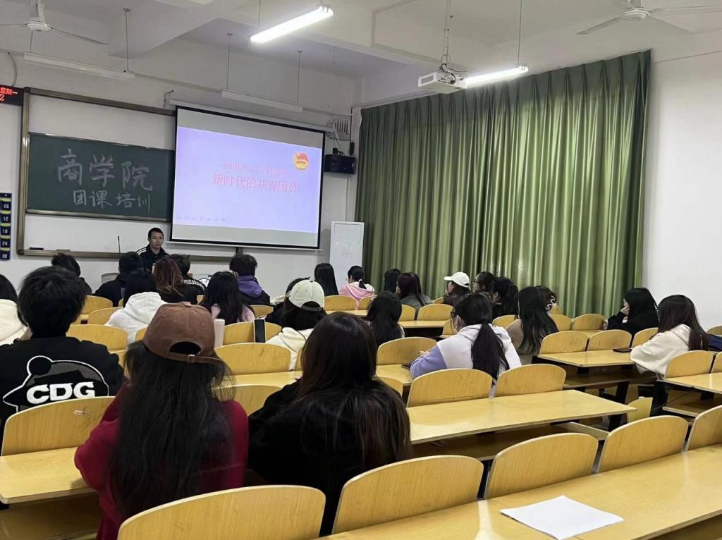 在2023年11月6日中午邓剑龙老师为新发展团员讲解青团团章,邓老师详细介绍了团章的内容以及身为一个共青团员,乃至是一名党员,在日常生活中不仅要清楚自己的身份,更应该履行一个团员、党员的义务。邓老师鼓励我们要积极学习百年党史所承载的优秀品格,深刻掌握和运用实事求是的马克思主义和毛泽东思想,培养共产党人自我革新的广阔胸襟。