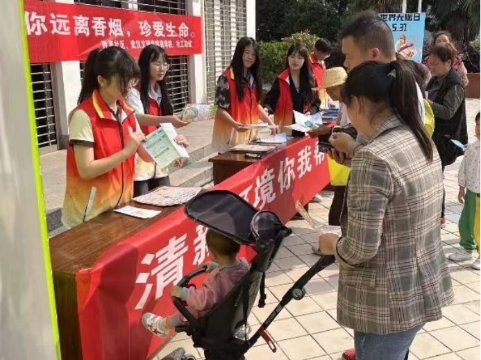 为了进一步宣传吸烟危害和戒烟知识,营造一个健康、清洁、禁烟的良好社区环境。商团委在胜海社区开展以“清新环境你我帮,拒绝烟扰促健康”为主题的世界无烟日宣传活动。