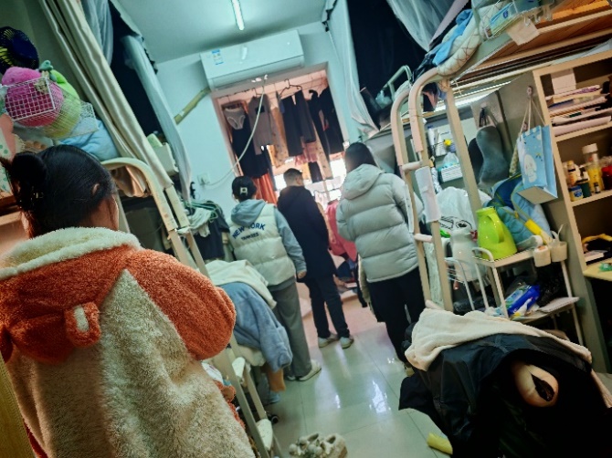 查寝是校园管理中的重要一环,更是温暖与责任的传递。老师们以实际行动守护着每位同学的茁壮成长,让老员工活更加安稳、和睦。在这寒风呼啸的寒冬时节,恰似璀璨明灯,温情陪伴着同学们一路奋勇前行。