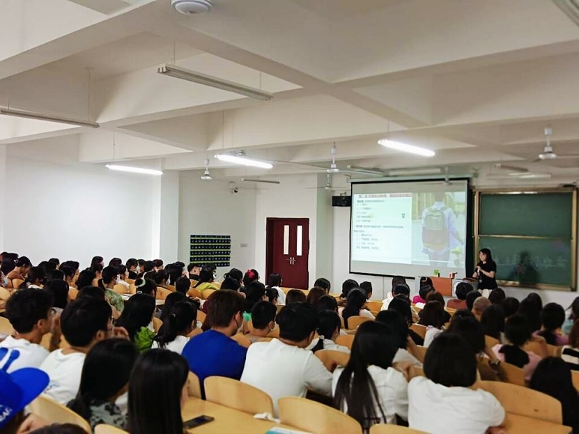 张萌老师的班会主题为《奋斗与平台共赢 构架职场蓝图》