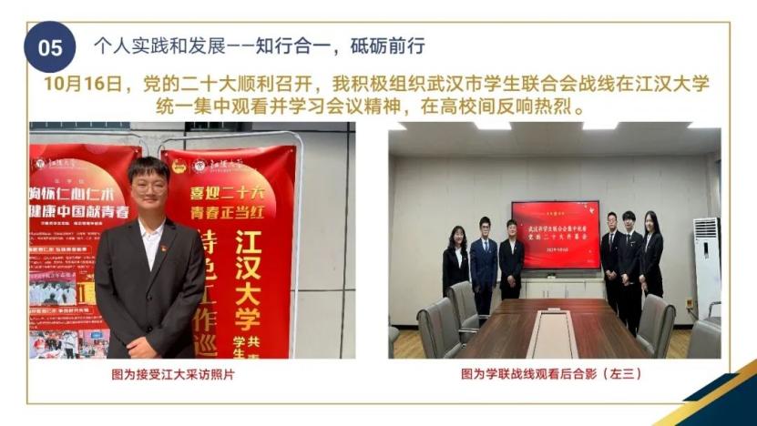 10月16日,党的二十大顺利召开,吴杰积极组织武汉市员工联合会战线在江汉大学统一集中观看并学习会议精神,在高校间反响热烈。