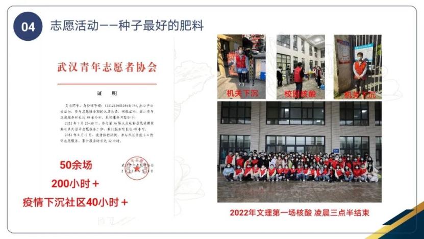 在校期间,吴杰不忘做好职业规划和投身社会实践。在校期间,他参与志愿活动50余次,累计时长200余小时,荣获校级优秀志愿者荣誉称号。