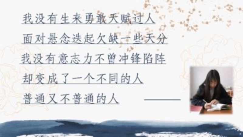 英语学习的入门其实并不难。我从最初的被动学习转化到主动自愿地去学习靠的就是“兴趣”,同时在学习的同时我也通过参加各类英语学科竞赛去不断检验成果,收获信心。比如说我爱好健身,于是打算今天去操场跑个400m,当跑到400m的时候我可能已经不想再跑下去了,但这时我想到了村上春树的那句话:“今天不想跑,所以才去跑,这才是长距离跑者的思维方式。”于是我决定再坚持一下多跑100m,而跑完这100m我收获的绝不仅仅只有小腿的酸痛感,还有征服了那额外100m的成就感。而成就感又在无形中不断地激励着我,慢慢地也许我能够一口气跑下1公里了。