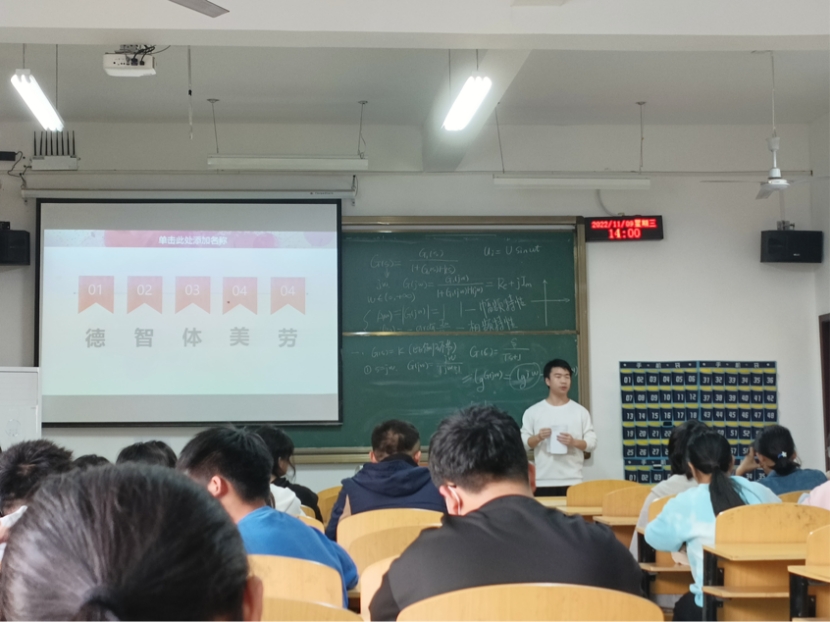 2022年11月10日,财务管理系主任胡小波老师和辅导员张萌老师组织22级财务管理专业等班级参加了罗飞同学经验专场交流会。罗飞在分享中鼓励22级新生要注重德、智、体、美、劳全面发展,介绍了大学中成长和收获的感悟,推荐了实用的学科竞赛的参赛技巧和技能学习资源。在现场,罗飞还和22级新生进行了互动交流,解答了考证、工作等方面相关问题。