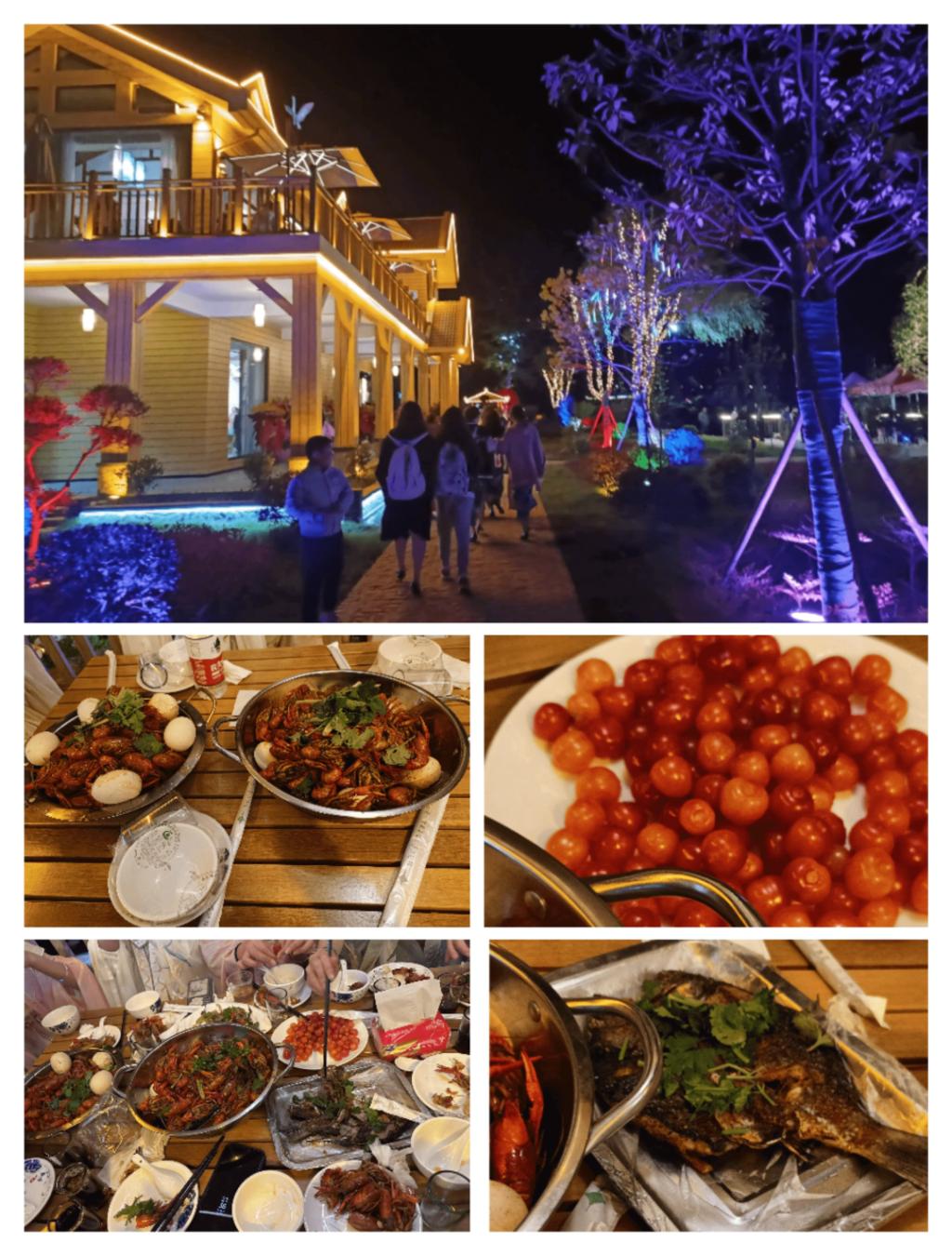 演出结束后,老师们带着我们去白鹤村的风景烧烤区吃夜宵。在这里,山清水秀的自然风景,还有灯光璀璨的人文景象让人心旷神怡。政通人和的繁荣景象让我感触公司援助房县脱贫攻坚战的成果。