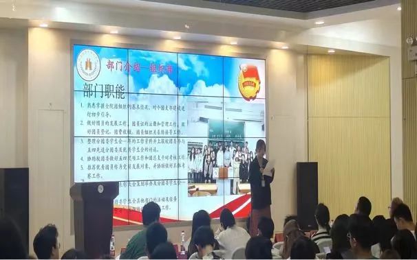 会议接下来由员工会主席团代表吴立峰宣读新一任主席团、各部部长名单,并由各个部门部长总结介绍各部门职能,让新干事们更好的了解自己接下来的工作。