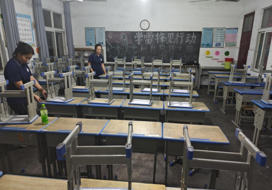 带着这份期望与嘱托,志愿者们踏上了这段期待而又未知的旅程。到达目的地后,大家尽快熟悉了校园环境并投身自己的工作,每位志愿者各司其职,整理好物资,打扫完宿舍后,各班班主任迅速进班打扫卫生并布置桌椅,为7月6号的开营仪式做足充分准备。