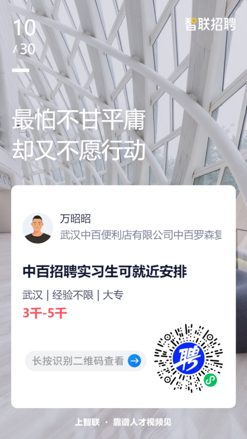 结合这样的思考和父母的建议,我的第二份简历投向了中百仓储超市有限公司。顺利通过面试后,我于11月初以管培生的身份入职了中百仓储人信汇店进行轮岗学习。