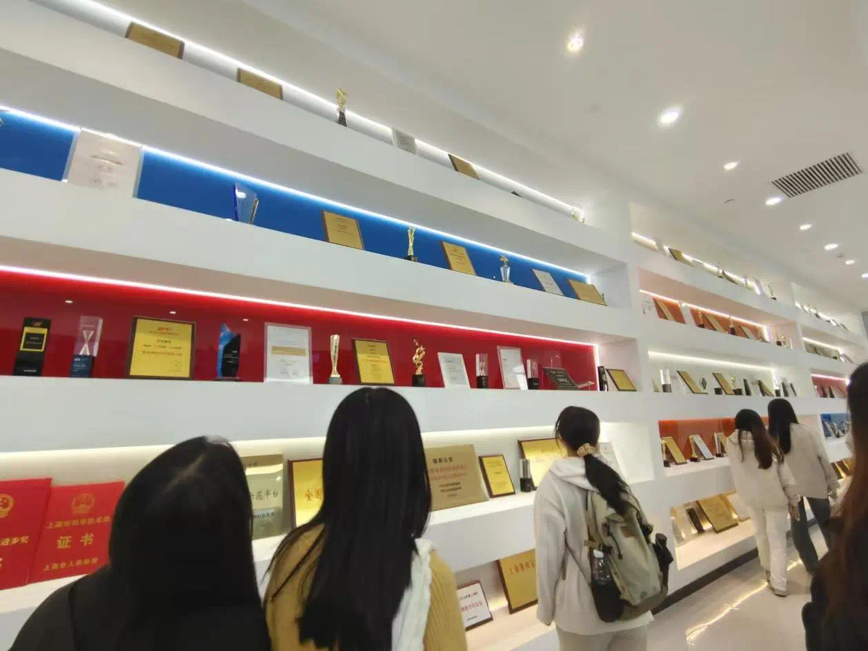 进入珍岛集团,同学们被眼前琳琅满目的荣誉证书与奖杯深深吸引。珍岛集团的谢倩倩老师和刘艳双老师向大家详细介绍了公司的发展历程、薪资待遇、专业岗位的人才需求及发展前景。随后,同学们分为两组,参观公司的办公环境,亲身感受到珍岛集团的工作环境与氛围。