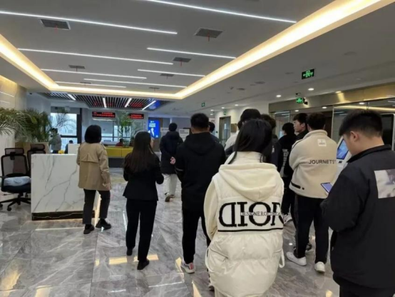 15:00,师生在宋玉娥、邓瑶、卫晓飞等工作人员的带领下首先进行了总部参观活动。同学们分为两组陆续参观了武汉贝壳公司的银行驻点、交易服务中心、员工区、家居区等办公场所。通过参观,员工们感受到了武汉贝壳公司的舒适和良好的工作环境与氛围。