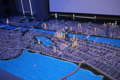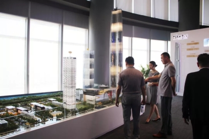 展厅沙盘展示了绿地中心在武汉的地理位置和地标特质