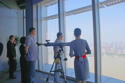 刘可风董事长一行在展厅俯瞰江景