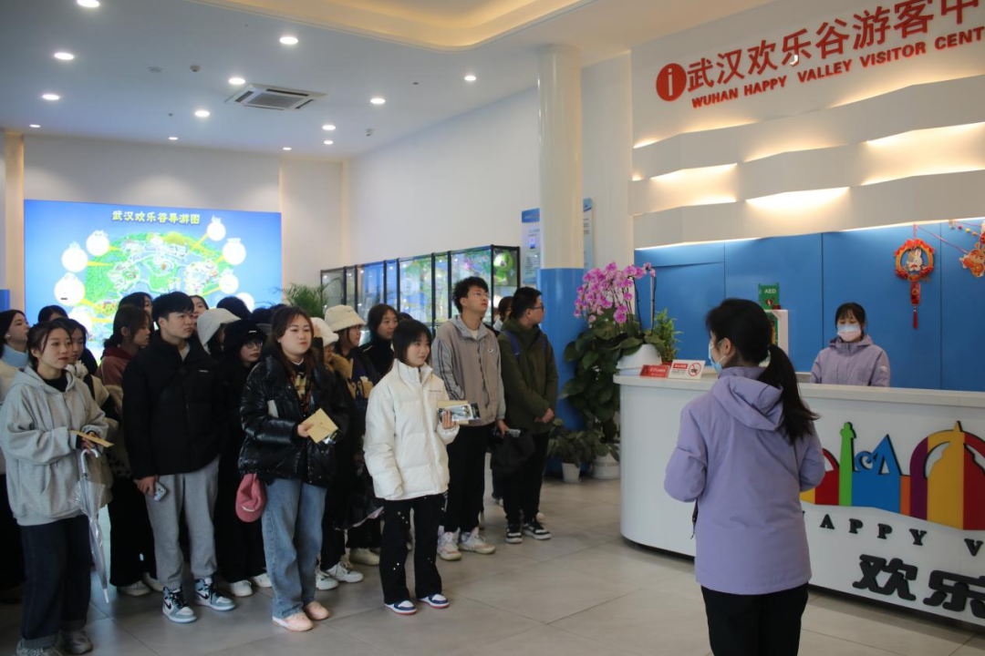 2023年2月22日14:00-17:00,威廉希尔williamhill工商管理系旅游管理教研室主任丁浩、工商管理系旅游管理专业教师阮啸、威廉希尔williamhill财务管理教师、公司教学督导刘肇宇和辅导员、公司新媒体中心负责人张萌带2021级市场营销、旅游管理专业班25名员工包车到武汉欢乐谷进行认知实习活动。武汉欢乐谷招聘培训室经理吴茜、招聘主管熊娜负责接待了威廉希尔williamhill师生一行。